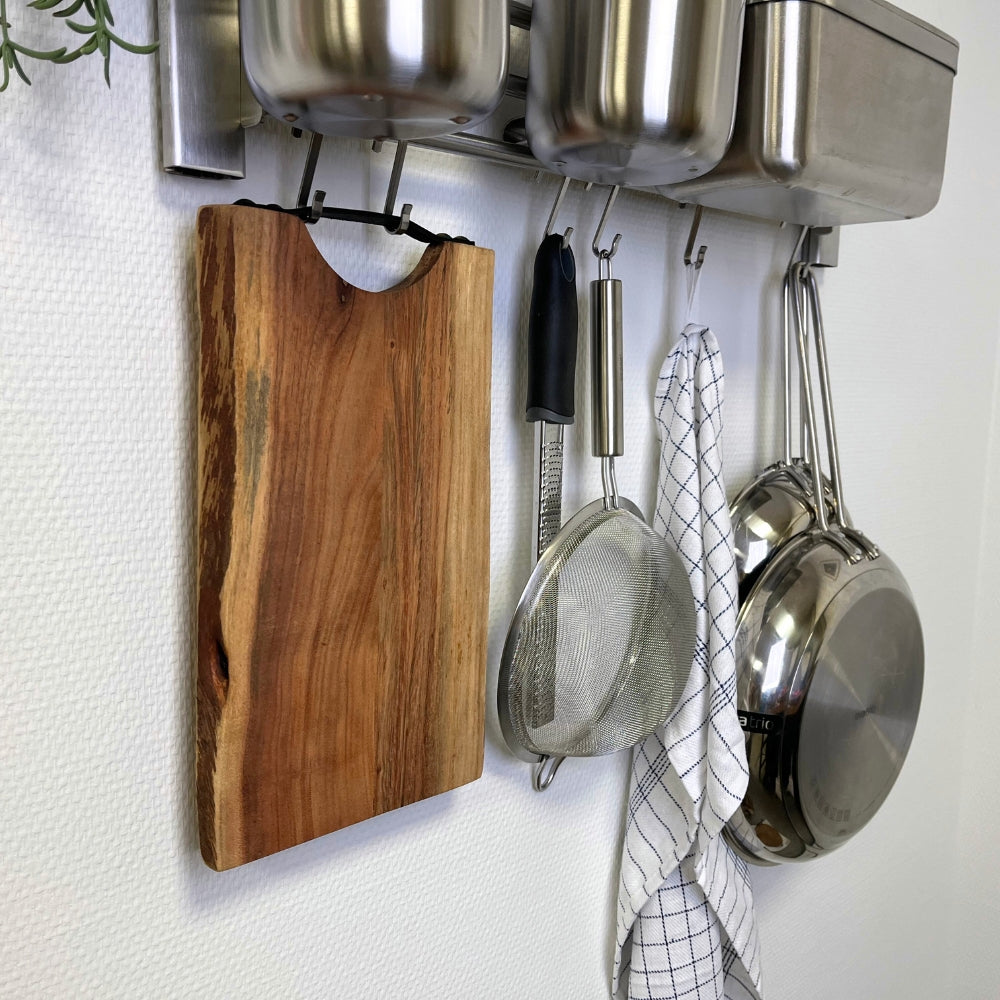 Stora skärbrädor i trä är bra för att hacka grönsaker, skära kött eller knåda deg. Du kan arbeta fritt utan att oroa dig för utrymmesbrist. Långa skärbrädor är särskilt bra för att skära bröd eller förbereda flera ingredienser samtidigt.