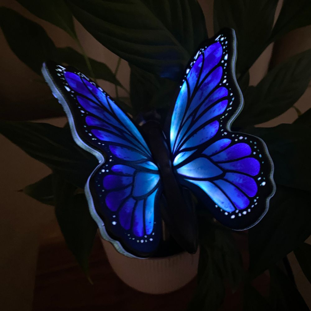 Den fina fjärilen med ljuseffekt lyser upp när mörkret faller på och ger ett stämningsfullt och dekorativt uttryck. Lampan är soldriven, så den laddas automatiskt under dagen och tänds på kvällen – helt utan sladdar.