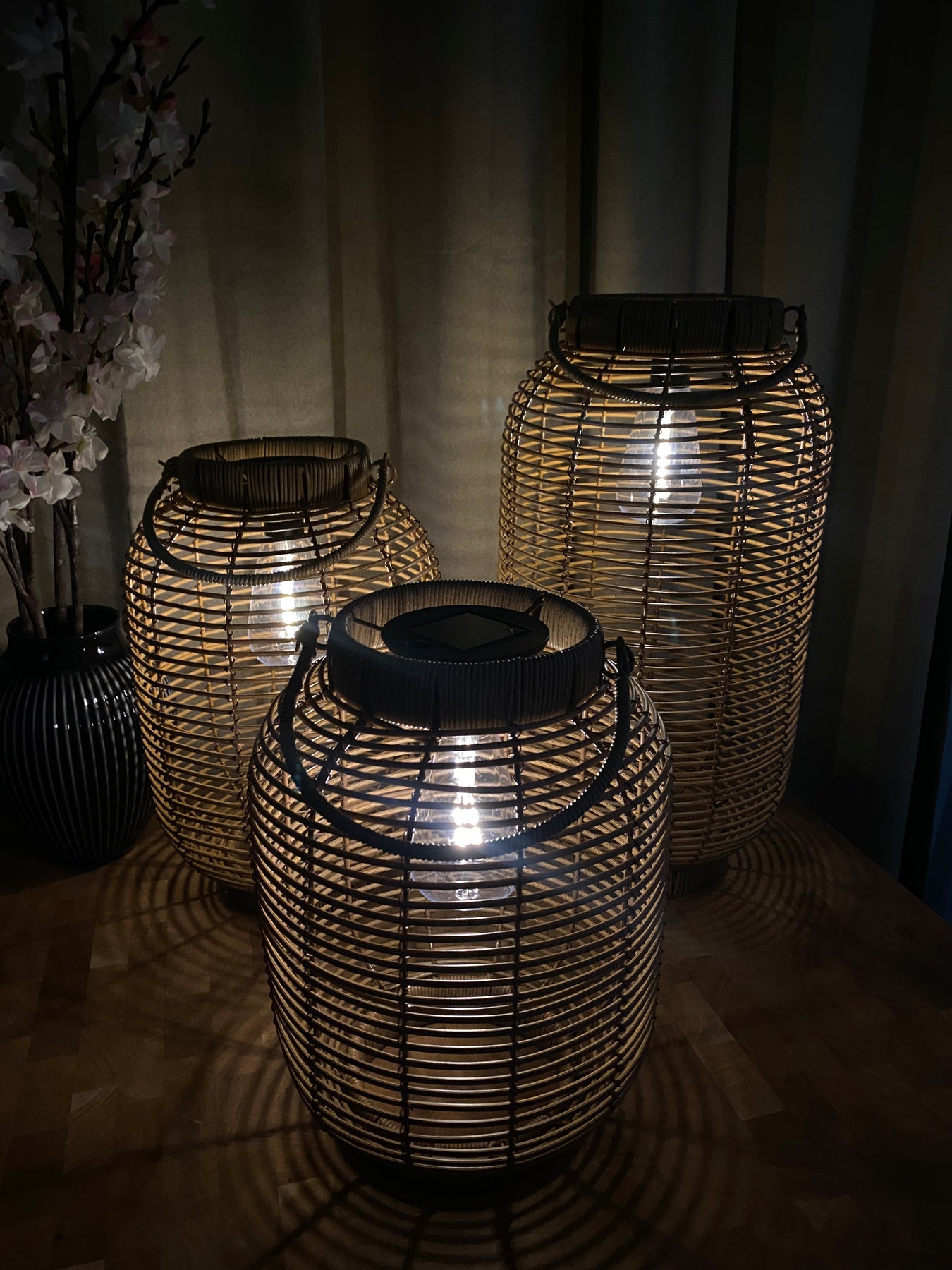 Försköna din uteplats med dessa eleganta och praktiska sollyktor i naturlig färg. Setet består av tre lyktor i olika storlekar, gjorda av slitstark PVC och metall. Dessa lyktor är inte bara vackra att titta på, utan också designade för att tåla väder och vind, vilket gör dem till ett perfekt komplement till alla trädgårdar eller uteplatser.
