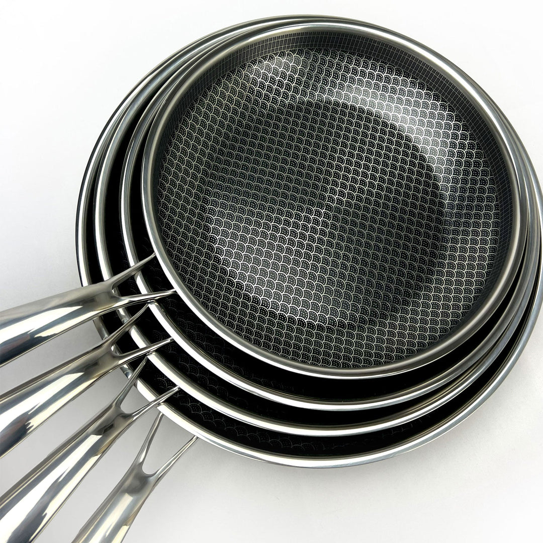 Rostfritt stål är välkänt för att vara starkt och tåla hög värme. Non-stick stekpannor, även kallade non-stick eller teflon stekpannor, är bra för matlagning med lite fett och är lätta att rengöra. Vissa stekpannor använder flera material tillsammans för att säkerställa bästa tillagning och värmefördelning.