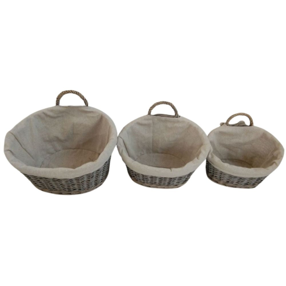 Korgset 3 st. 44X35H20 38X30H17 31X24H14 pil flätad grå