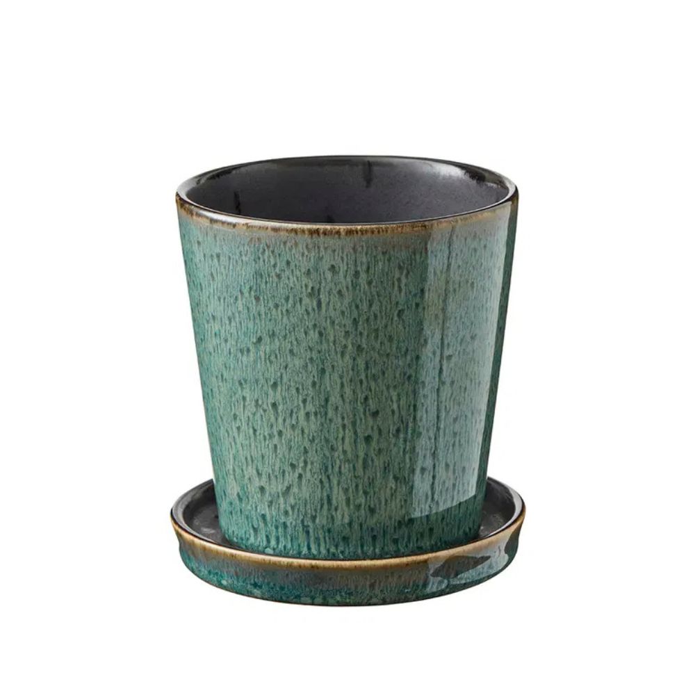 Den reaktiva glasyren och den handgjorda finishen ger varje kruka sitt eget unika uttryck – ingen är exakt likadan, och små variationer i färg och glasyr är en del av charmen.