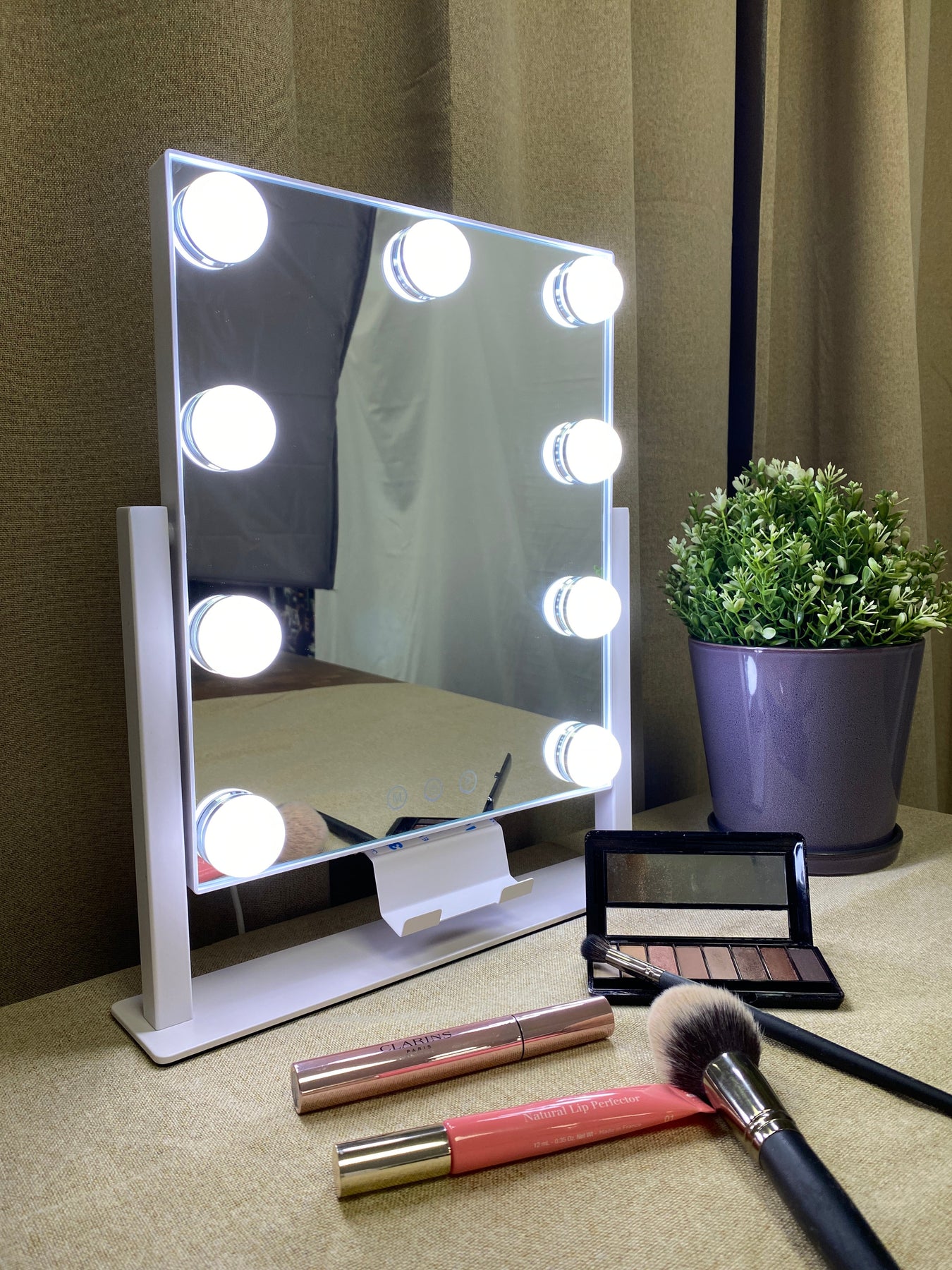 Få professionell belysning hemma med denna snygga Hollywood-sminkspegel från Conzept. Utrustad med LED-lampor längs kanten, mobiltelefonhållare, pekfunktion och medföljande kabel – perfekt för exakt makeup, styling eller hudvård.