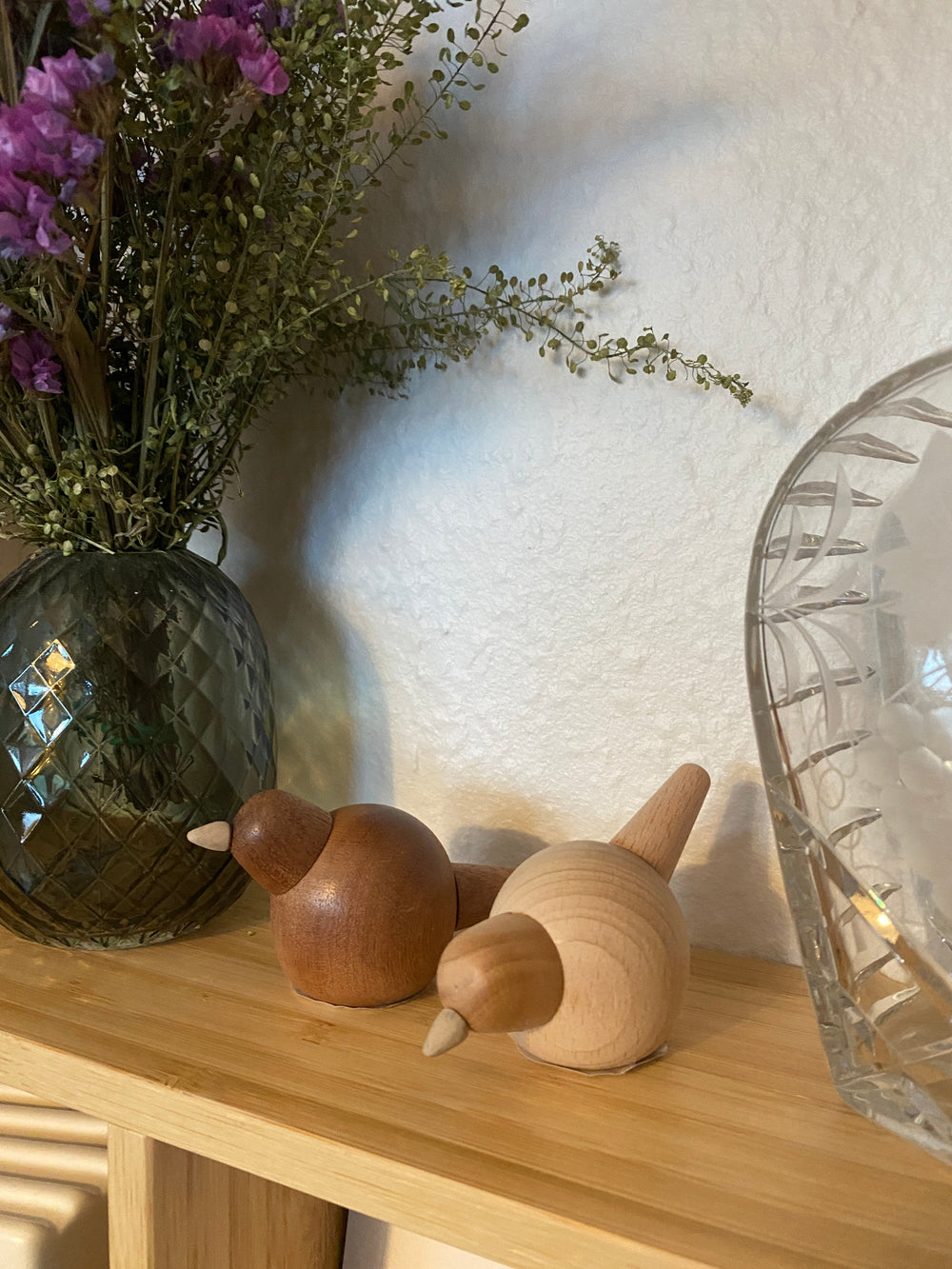 Charmig naturinspirerad dekor: Fågelfigurer i mahognybrun, H5 cm