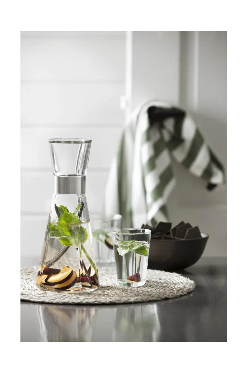 Vattenkaraffen är perfekt för att servera isvatten, där du kan tillsätta saker som mynta, citron, lime etc. (För en fin touch kan du också tillsätta några frysta bär i vattnet). På sommaren kan du naturligtvis också servera lite hemgjord lemonad, saft etc.