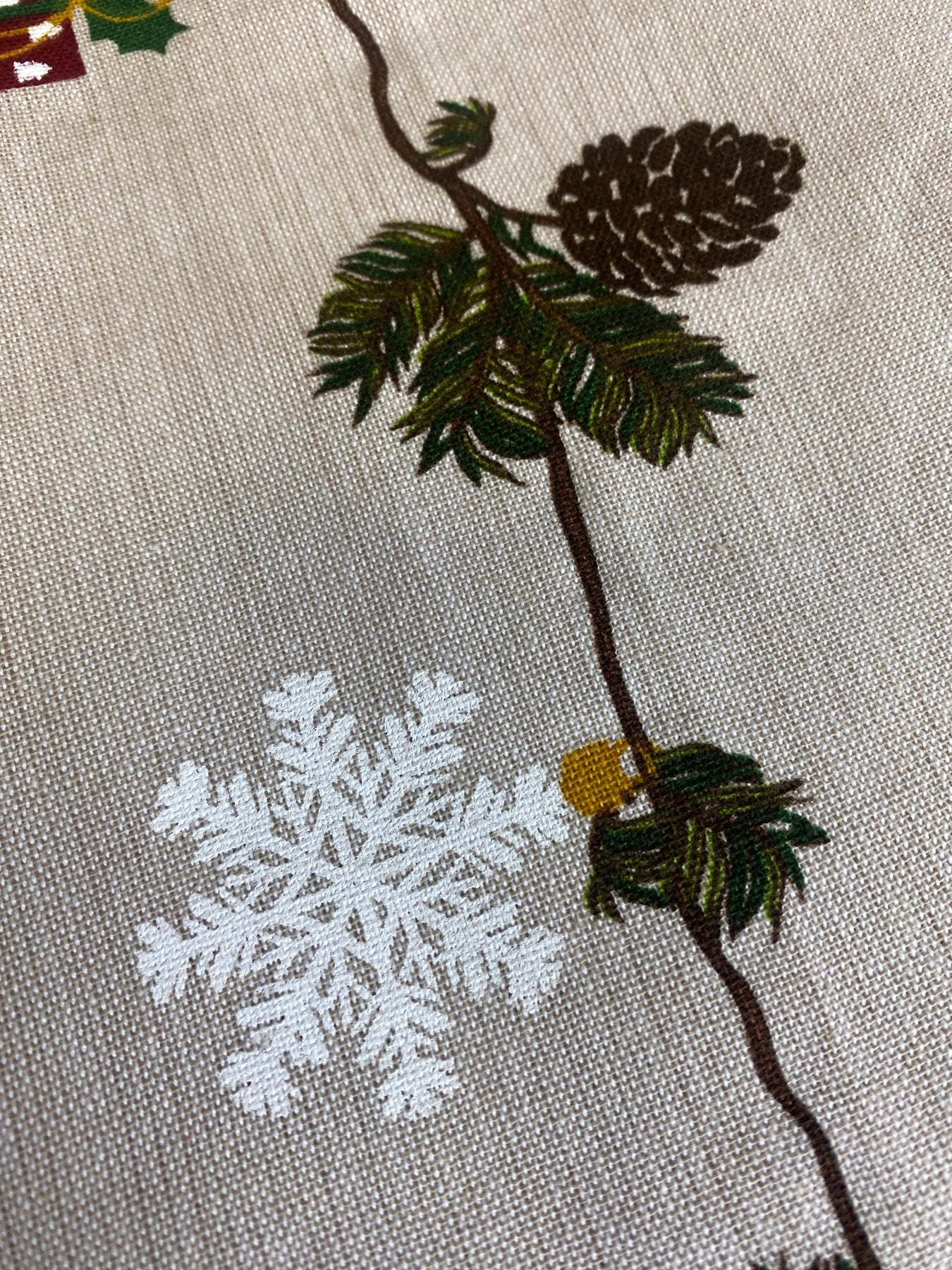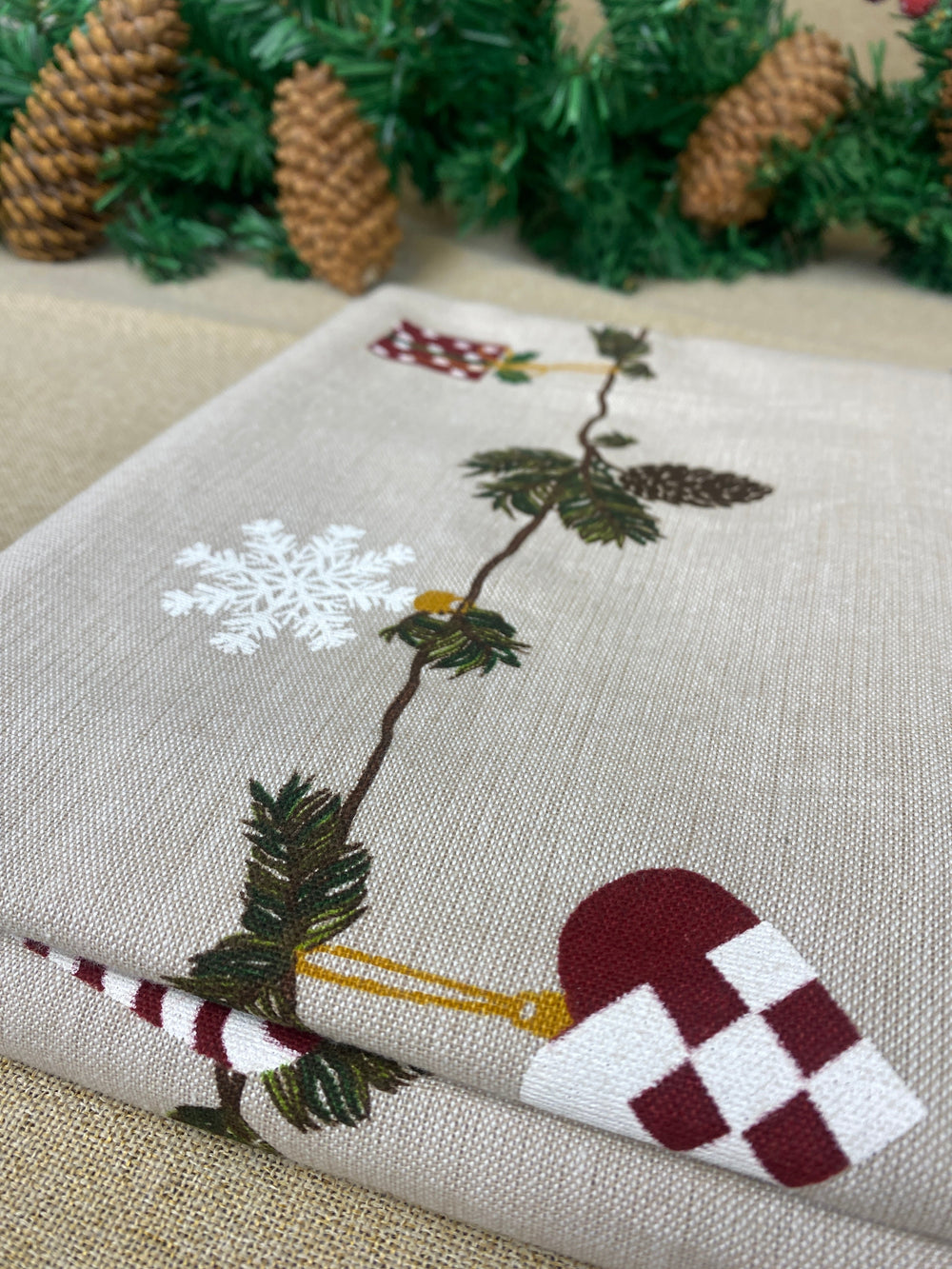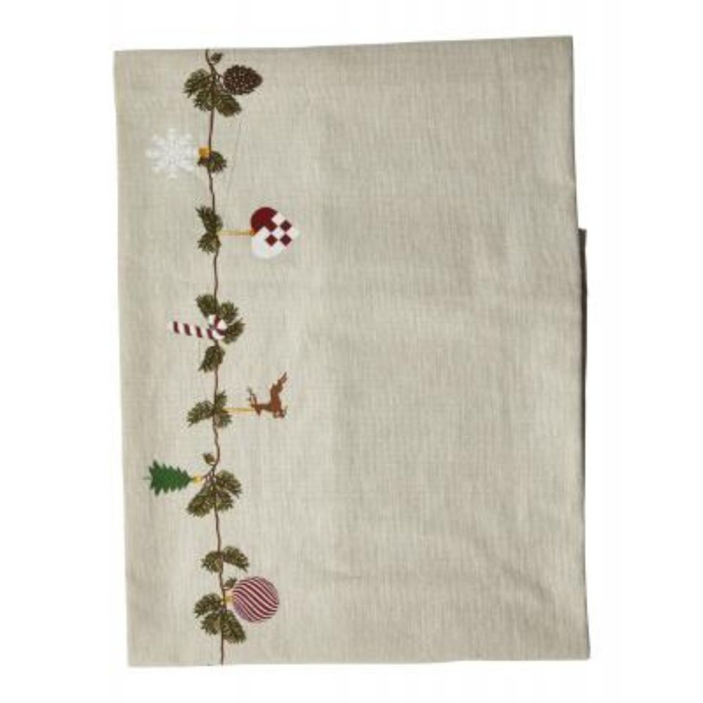 Skapa den perfekta julstämningen med denna vackra julduk i bomull. Dukens mönster med granar, julkulor, julhjärtan och julstänger ger dukningen ett klassiskt och mysigt utseende som passar perfekt för advent, julluncher och själva julafton. Den är tillverkad av 100 % bomull, vilket gör den mjuk, slitstark och lättskött, så att du kan använda den igen säsong efter säsong.