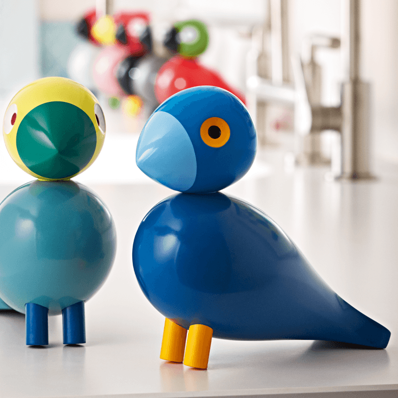 Ikonisk träfigur : Songbird Kay i eleganta blå nyanser – en stilren del av Kay Bojesens fågelfamilj.