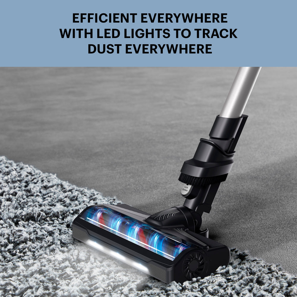 • LED-ljus: Inbyggt LED-ljus på munstycket gör det lättare att se smuts och damm, speciellt i mörka hörn.